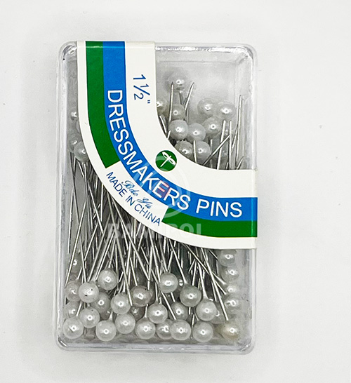 Szpilki z białymi główkami o długości 40 mm i średnicy główki około 3,5 mm są dostępne w opakowaniach po 75 sztuk.